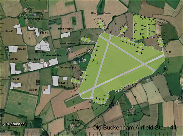 Construction began on Old Buckenham Airfield in 1942 by Taylor-Woodrow Ltd, it was built to the standard Class A. specification for heavy bomber use with the main runway being 2000 yards in length on a NE-SW heading, and the two auxiliary runways of 1400 yards, all three being 50 yards in width. To meet USAAF requirements 50 hard standings were laid along with two T-2 Hangars, a Bomb Dump and accommodation for 2900 personnel.